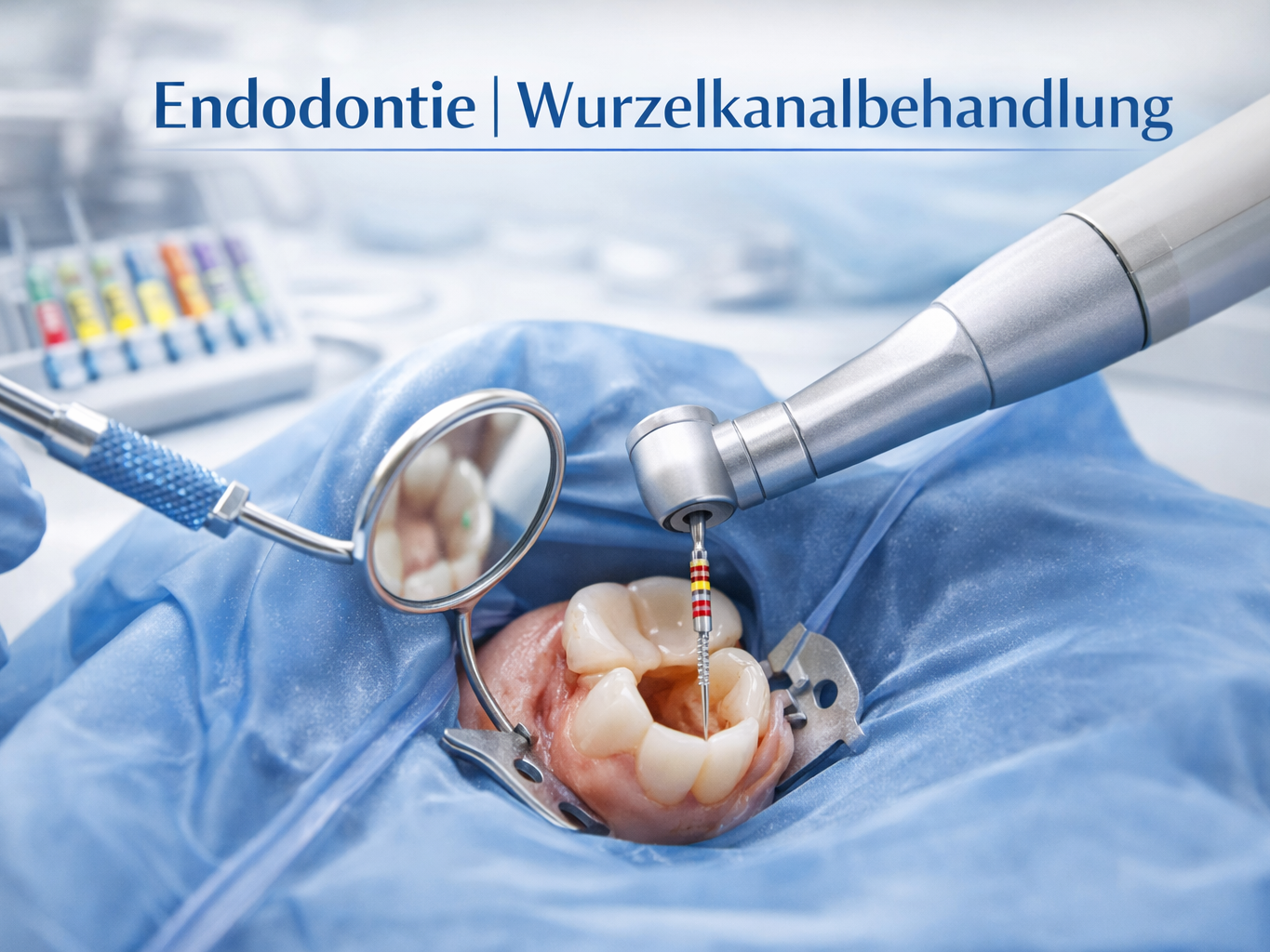 Die Wurzelkanalbehandlu-ng ermöglicht den nachhaltigen Erhalt entzündeter Zähne durch eine präzise, schonende Reinigung und Versiegelung des Wurzelkanalsystems.